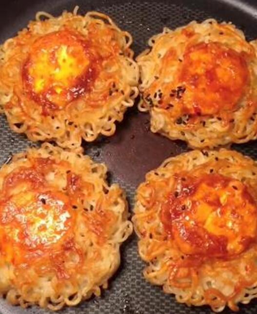 #泡面x蛋黃=鳥(niǎo)巢雞蛋餅