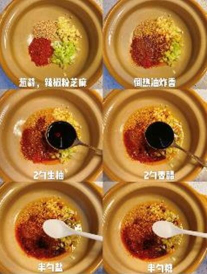 麻醬與雪碧慢慢攪拌至濃稠狀,倒入煮熟的面餅,搭配蒜末香菜,攪拌均勻。