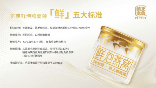正典鮮泡燕窩方便又營(yíng)養(yǎng),完全符合上班族快節(jié)奏的生活方式。而且目前只有正典品牌有鮮泡燕窩。而正典作為蟬聯(lián)6年馬來(lái)西亞輸華燕窩總量的冠軍品牌,也是可以值得信賴(lài)的。