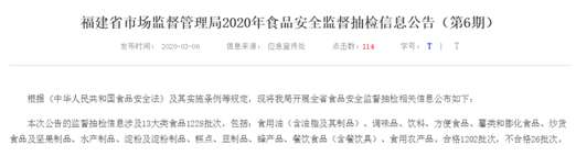 同時,永輝超市福建門店近日也連遭通報。3月6日,福建省市場監(jiān)督管理局發(fā)布2020年食品安全監(jiān)督抽檢信息公告(第6期)顯示,本次公告的監(jiān)督抽檢信息涉及13大類食品1228批次,包括:食用油(含油脂及其制品)、調(diào)味品、飲料、方便食品、薯類和膨化食品、炒貨食品及堅果制品、水產(chǎn)制品、淀粉及淀粉制品、糕點、豆制品、蜂產(chǎn)品、餐飲食品(含餐飲具)、食用農(nóng)產(chǎn)品。合格1202批次,不合格26批次。