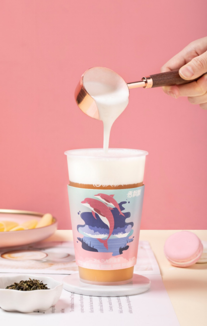 磨砂杯身搭配透明杯蓋,加上粉藍呼應的精美杯套,少女心的同時也不失高端感,顏值滿分;值得一提的是,在杯套圖案的設計上,香飄飄還特意印上了國家一級保護動物“中華白海豚”元素,希望能激發(fā)大家對野生生靈的關注,倡導生態(tài)環(huán)保理念。