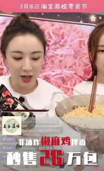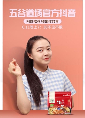 今年年初,五谷道場還與帶貨女王薇婭合作,旗下產(chǎn)品椒麻雞拌面經(jīng)過薇婭團隊的試吃之后,直呼這是插隊上直播間也要推薦給大家的好物,在316零食節(jié)直播時,3分鐘就售空了26萬袋!
