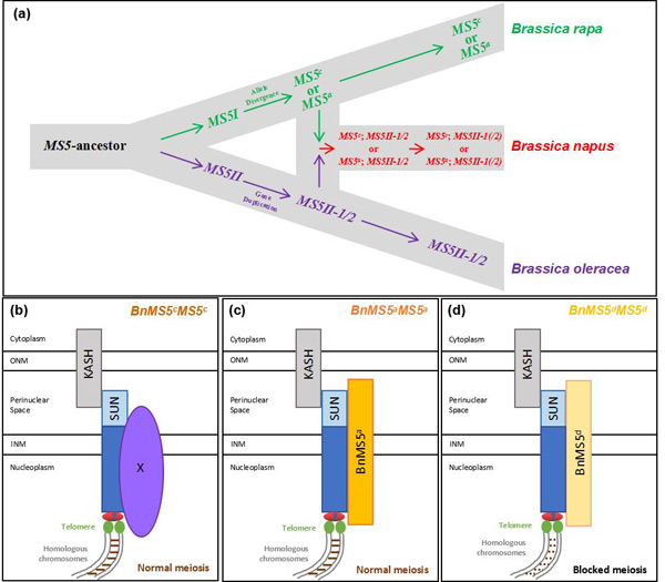 BnMS5基因的進化與其不同等位基因功能模式圖