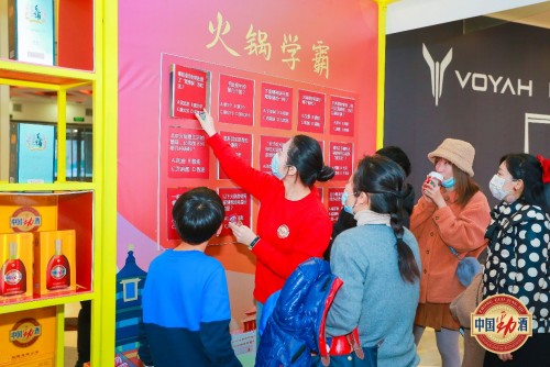 場地中央的巨型火鍋模型,彰顯了北方銅鍋涮肉的風(fēng)格,引來眾多消費者拍照打卡?;訁^(qū)域的【火鍋學(xué)霸】,線下實物版“翻翻看”也是笑聲最多的游戲區(qū)域。火鍋文化展示區(qū)、火鍋三字經(jīng),為了迎合當(dāng)代人樂于探索新鮮事物的特點,將傳統(tǒng)火鍋文化,用通俗易懂,簡單有趣的圖文,進行呈現(xiàn),在充分展示中國火鍋文化的同時更具趣味性。