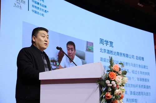 馬迭爾食品公司優(yōu)秀經(jīng)銷商代表——北京潞勝達商貿(mào)有限公司總經(jīng)理周學(xué)寬向來賓分享北京市場運營經(jīng)驗,幫助經(jīng)銷商了解行業(yè)動態(tài),表明馬迭爾為經(jīng)銷商終端賦能的動作和決心。