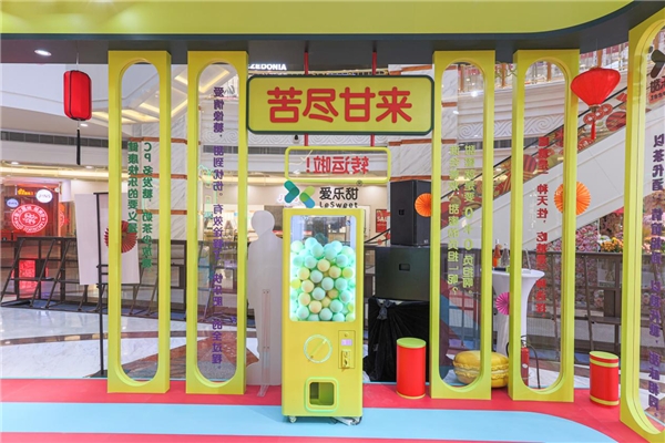 位于上海環(huán)球港B2層的快閃店被分為五大空間,分別是訴苦大會(huì)拍照墻、丁香醫(yī)生認(rèn)證的糖糖正正墻、愛樂甜明星產(chǎn)品展示區(qū)、食來運(yùn)轉(zhuǎn)抽簽區(qū)和樂樂茶“零糖甜蜜”茶吧。