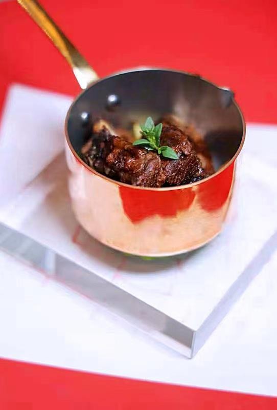 由精選上等的32種食材,用18種工序,經(jīng)過4小時的文武火熬制成粘稠的復(fù)合醬,其中加入了賴茅酒,酒中的2000多種芳香物質(zhì)使得醬香濃郁,風(fēng)味突出,腌制牛肋骨24小時,低溫慢烤5-6個小時,醬香、酥爛,口味獨(dú)特。