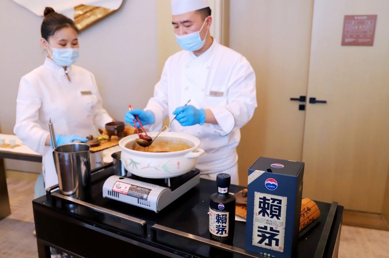 8月1日,北京通州北投希爾頓酒店青雅中餐廳“中華主廚季”正式啟幕,貴州賴茅酒業(yè)有限公司為活動提供大力支持,總廚呂晶師傅用醬香酒為菜肴增色,邀請各位食客共同開啟盛夏賞味之旅,打造一場夏日饕餮盛宴。