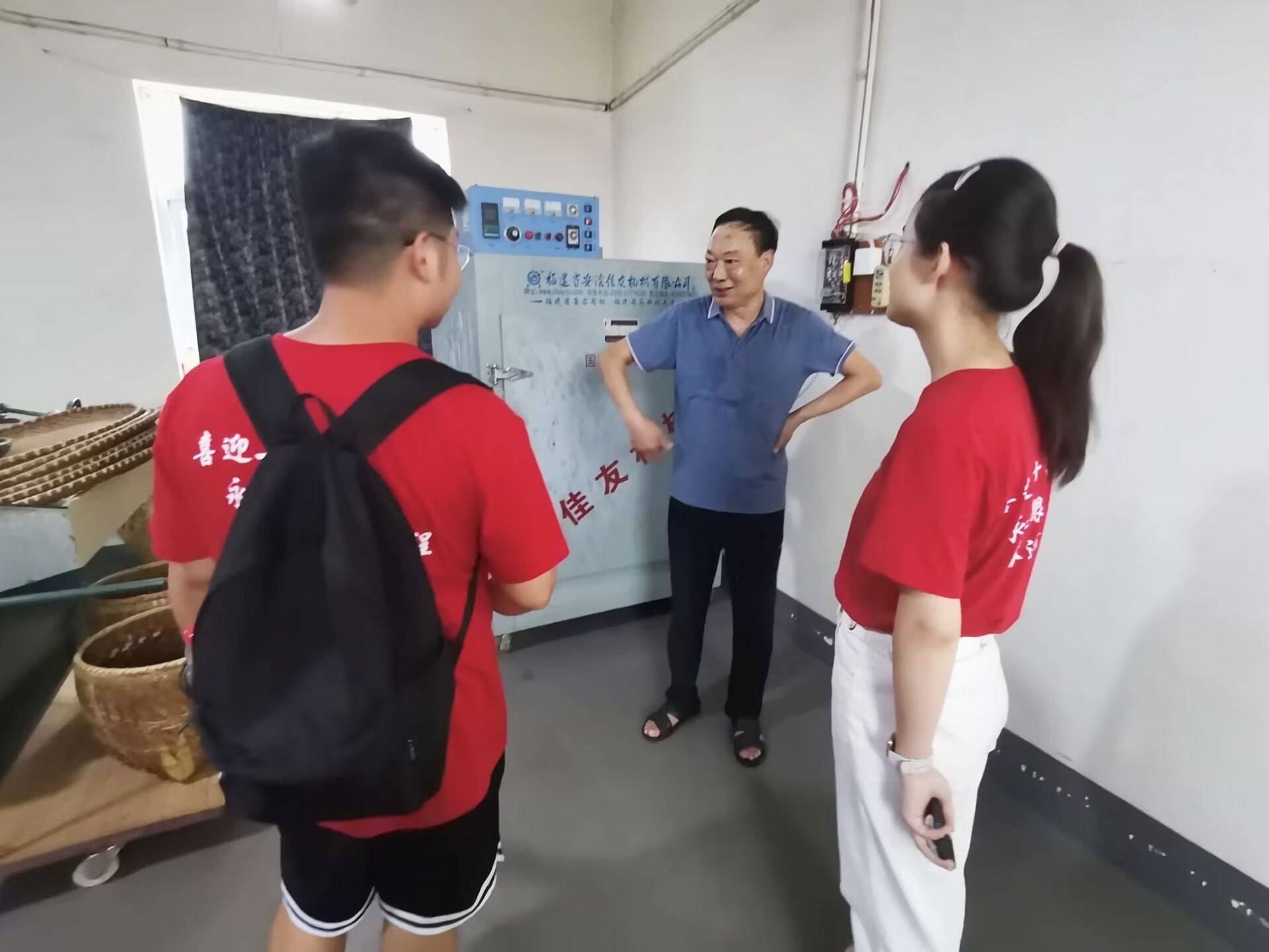 圖為實踐團成員走訪當?shù)夭鑿S,了解茶葉生產(chǎn)狀況。