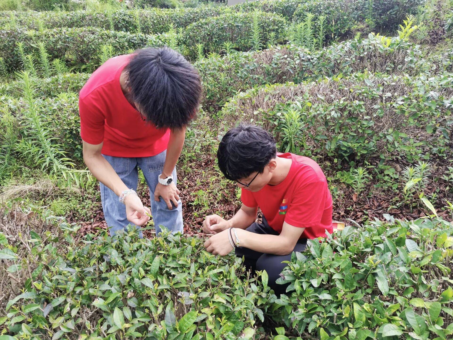 圖為實踐團成員在茶園中了解茶葉種植知識。