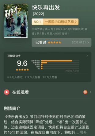 7月20日,一檔由大千影業(yè)、芒果TV、東南衛(wèi)視、海峽衛(wèi)視聯(lián)合出品的綜藝節(jié)目《快樂(lè)再出發(fā)》驚喜開(kāi)播,一經(jīng)開(kāi)播就持續(xù)爆紅,截止當(dāng)前豆瓣評(píng)分高達(dá)9.6分,堪稱(chēng)今夏最火爆的綜藝。而這檔小成本小制作綜藝的大火,也讓我們注意到節(jié)目的獨(dú)家冠名商--五谷道場(chǎng),一個(gè)堅(jiān)持非油炸18年的國(guó)貨品牌。
