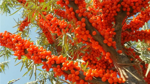 在實際應(yīng)用中,沙棘渾身是寶,與人參、蟲草、雪蓮齊名,并稱為我國“四大藥食”瑰寶。其根、莖、葉、花、果實、種子均可入藥,沙棘果具有止咳化痰、健胃消食、活血散瘀的功效?,F(xiàn)代醫(yī)學(xué)研究表明,沙棘果可降低膽固醇,緩解心絞痛發(fā)作,還有防治冠狀動脈粥樣硬化性心臟病的作用。正因其強大的藥食功效,沙棘被美國人稱為“生命之源”,被日本人奉為“長壽果”,被國際醫(yī)藥學(xué)家和營養(yǎng)學(xué)家譽為人類21世紀最具發(fā)展前途的營養(yǎng)保健及醫(yī)藥植物。