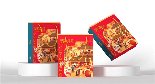 為充分適配春節(jié)豐富消費場景,“嗑小熊”在2023年貨季共推出13款堅果禮盒,多樣的規(guī)格與價位組合為用戶提供了多元化選擇。作為年貨商品,“嗑小熊”在外觀設(shè)計上也頗具巧思,“節(jié)慶產(chǎn)品有一定特殊性,體現(xiàn)節(jié)慶儀式感也是產(chǎn)品價值的一部分。中國年節(jié)文化源遠流長,我們本季的禮盒設(shè)計精選了最具代表性的年味場景,為熱鬧的春節(jié)氛圍增色。”陳四海介紹。
