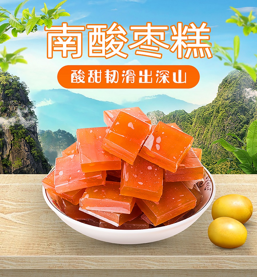 1992年,齊云山公司率先將其采用傳統(tǒng)和現(xiàn)代相結(jié)合的特殊工藝,經(jīng)多道工序?qū)Ⅴr果中僅占20%多的果肉分離出來,制成散發(fā)自然果香,晶瑩剔透的南酸棗果漿,再經(jīng)低溫烘干成型,制成一塊塊色如琥珀的齊云山南酸棗糕。