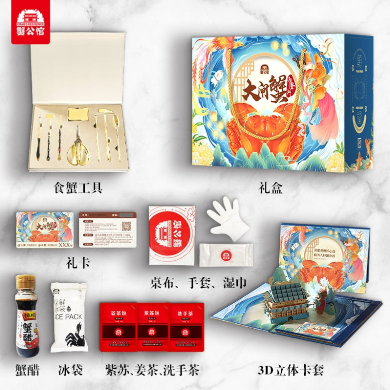 包裝方面,蟹公館大閘蟹堅(jiān)持采用香草捆綁,健康環(huán)保不占重,更有三層防護(hù)保障螃蟹鮮活,并承諾死蟹缺重包補(bǔ)(如死蟹n只即補(bǔ)n+1)。外觀方面,國(guó)潮禮盒精美、高端、大氣,且配套贈(zèng)送食蟹工具、蟹醋以及蒸蟹、品蟹輔料紫蘇和姜茶等等,送禮超有排面。