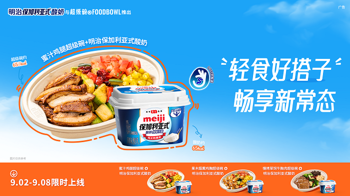 隨著健康飲食理念的深入人心,輕食已成為都市生活的一部分。明治(中國)投資有限公司于2024年8月30日宣布,“明治保加利亞式酸奶 純味不甜”與“超級碗FOODBOWL”共同推出輕食組合套餐,于2024年9月2日-9月8日登陸北京、上海共8家門店,三款人氣組合套餐線上線下同步發(fā)售,開啟“輕食好搭子 暢享新常態(tài)”的主題活動(dòng),為追求健康與美味的你帶來全新的飲食體驗(yàn)!