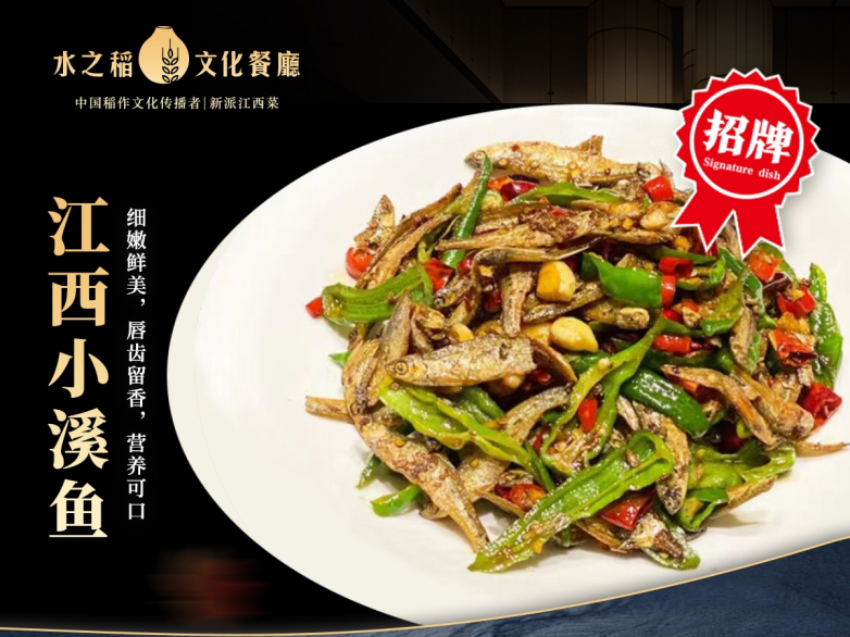 在這片土地上回響。江西上饒市萬年縣,作為中國稻作文明的重要發(fā)源地之一, 不僅孕育了豐富的農(nóng)作物,更滋養(yǎng)了一代又一代勤勞智慧的人民。這里發(fā)現(xiàn)了 距今約一萬年前的人工栽培稻遺址,被譽(yù)為“世界稻作文化發(fā)源地”,不僅有保存有完整的稻作文化系統(tǒng),而且有天然的條件養(yǎng)育萬年貢米的年年豐收。雜交水稻之父袁隆平老先生,為此親筆題字:野稻馴化,萬年之源。水之稻文化餐廳是以稻作文化為主題,以萬年貢米為紐帶,把萬年縣乃至江西各地特色美食匯集在一起,打造國內(nèi)首家以稻作文化為主題的新派江西菜餐廳,它用一道道精致的菜肴,講述著那些被歲月輕輕拂過的故事。