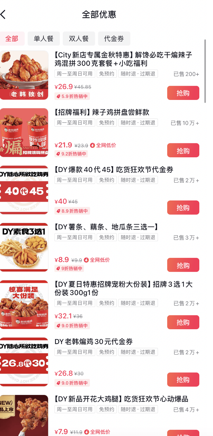 同時(shí),面向多元需求,老韓煸雞也上架了有針對(duì)性的貨盤(pán):首次嘗鮮,可以購(gòu)買(mǎi)“麻辣椒香招牌煸雞+小吃”,立減15.9元,僅需23.9元,低門(mén)檻解鎖雙份體驗(yàn);復(fù)購(gòu)老粉,可以購(gòu)買(mǎi)“招牌3選1寵粉大份裝”,立享8折,充分過(guò)癮;個(gè)性組合、多人聚餐,還可以囤“40抵50”代金券,無(wú)限制任選。