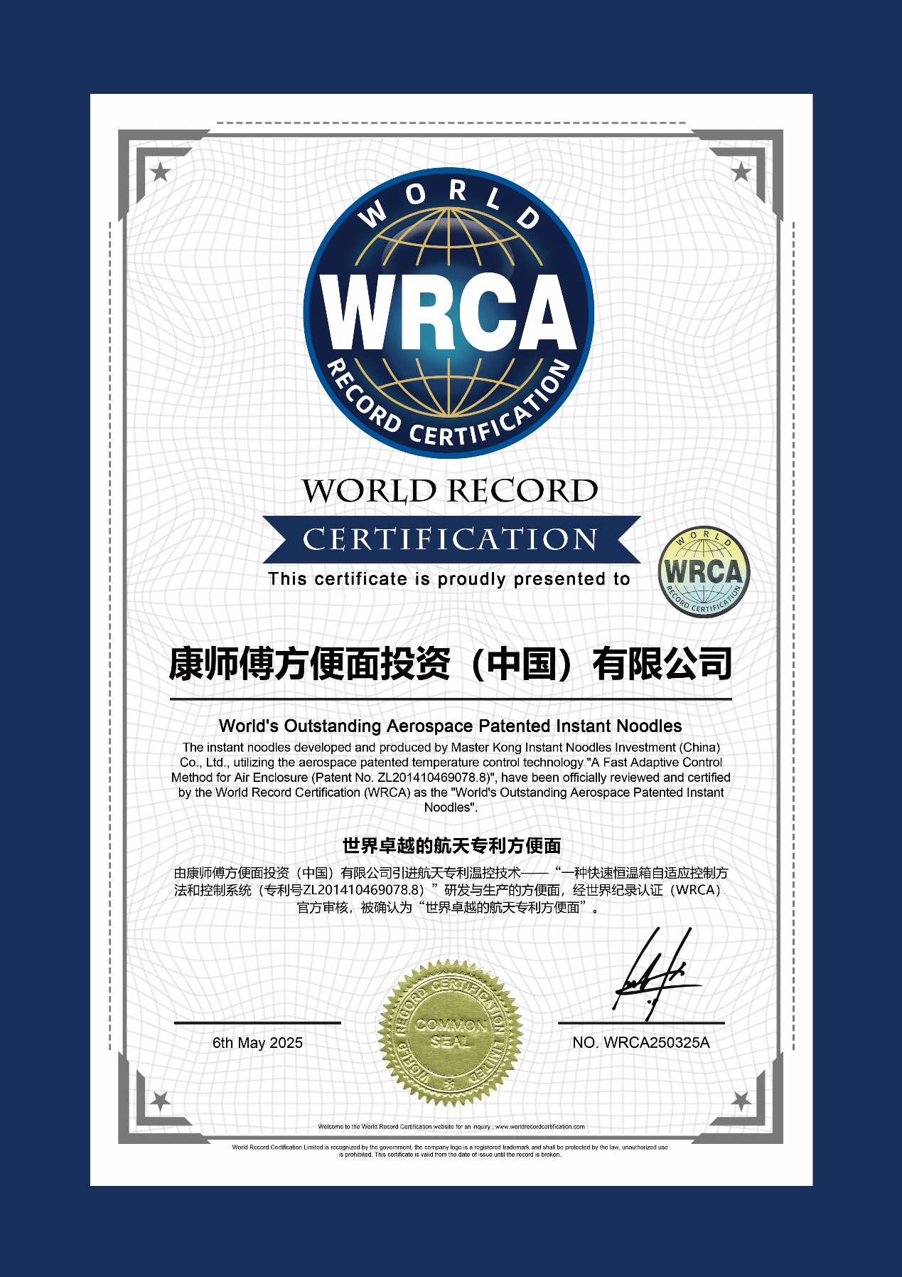 從太空到餐桌,康師傅用航天科技重新定義一碗面的品質(zhì)高度?;仡欉^往這些年,康師傅通過與中國航天基金會(huì)的戰(zhàn)略合作,追求航天標(biāo)準(zhǔn),對(duì)標(biāo)航天品質(zhì),并于2024年成為全國首個(gè)應(yīng)用航天專利的方便面企業(yè),將航天溫控專利技術(shù)賦能全線產(chǎn)品,讓面條口感不受地域、溫度等控制,始終勁道爽滑,2025年,康師傅還獲得WRCA“世界卓越的航天專利方便面”認(rèn)證。