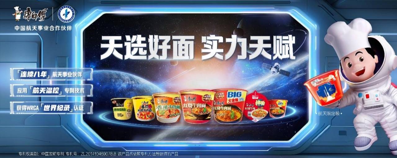 在保證食安的底線不動搖后,進(jìn)一步提高產(chǎn)品力?康師傅通過引入航天專利溫控技術(shù),提升產(chǎn)品加工溫度控制的穩(wěn)定度和精準(zhǔn)性,將高精尖的航天科技轉(zhuǎn)化為惠民實用產(chǎn)品。據(jù)悉,2024年,康師傅更是成為了首個獲得航天專利的方便面品牌,進(jìn)一步夯實了產(chǎn)品品質(zhì)與科技實力。