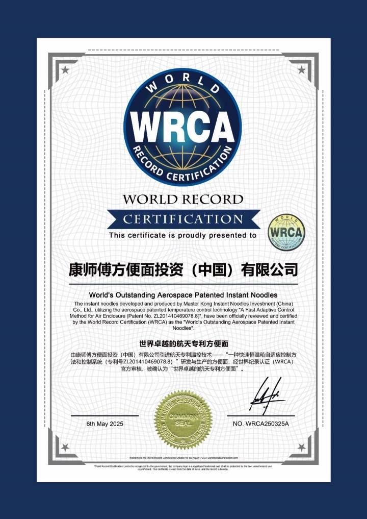 2025年5月,天問二號發(fā)射,中國航天事業(yè)再進(jìn)一步。而康師傅亦在不斷前行,八年來持續(xù)推進(jìn)、強(qiáng)化航天技術(shù)在產(chǎn)品端的應(yīng)用落地,讓每一款康師傅方便面都深深烙印上“天選好面”的標(biāo)簽。尤為值得關(guān)注的是,康師傅還斬獲了 WRCA認(rèn)證,被認(rèn)證為“世界卓越的航天專利方便面”。