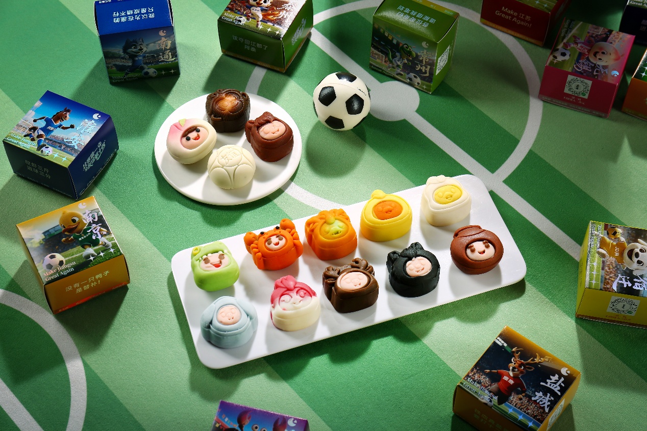 視覺與設(shè)計上,以 “足球 + 城市” 為核心靈感,用 14 款吉祥物造型月餅(覆蓋江蘇 13 座參賽城市及 1 款 “友誼第十四”)連接傳統(tǒng)與創(chuàng)新。命名、造型與食材均做了針對性創(chuàng)新:造型上融入 13 座城市的卡通形象;食材上遵循 “藥食同源” 理念,采用低糖低脂工藝,與傳統(tǒng)月餅形成差異化;命名則緊扣城市特色與蘇超梗,如 “浪里馬(蕓沙枸杞淮山藥月餅)”“徐老大(蛋黃肉松月餅)”“蘇得起(碧螺春茶月餅)” 等,為每座參賽城市定制趣味標(biāo)簽,進(jìn)一步提升產(chǎn)品話題性。