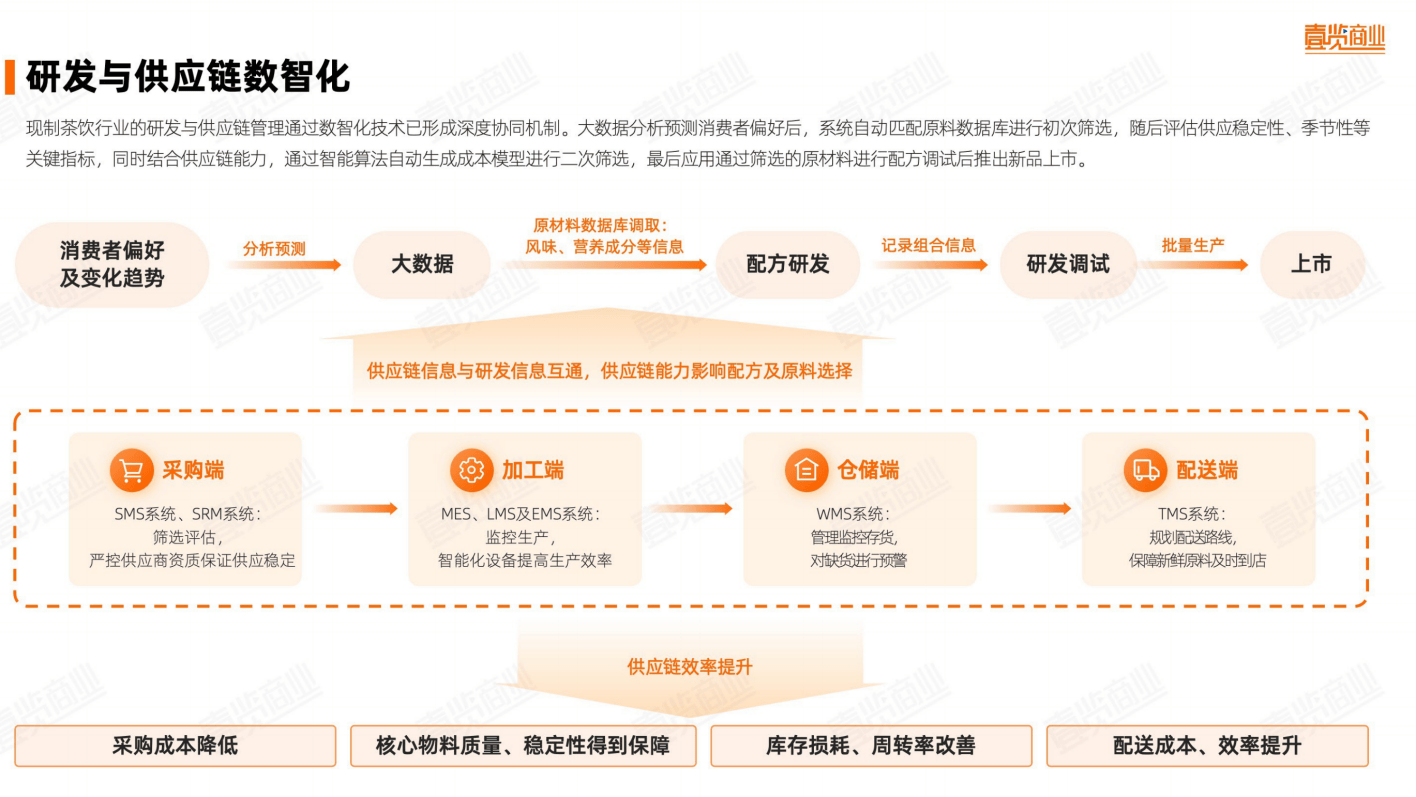 在供應(yīng)鏈與研發(fā)環(huán)節(jié),《報(bào)告》指出,茶飲企業(yè)正通過大數(shù)據(jù)分析與智能算法實(shí)現(xiàn)原料匹配、配方研發(fā)和成本模型的自動生成;在門店?duì)I建與管理層面,新興的“智慧工地”體系正在重塑品牌擴(kuò)張效率。