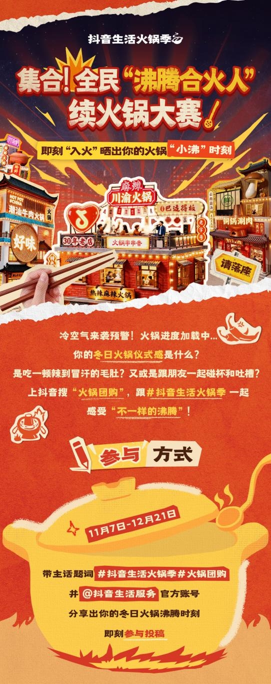 光是分享最愛的火鍋店還不夠?吃火鍋的每一個快樂瞬間都值得被記錄!「抖音生活火鍋季」懂大家吃火鍋時的意猶未盡,于是特別發(fā)起全民沸騰合火人續(xù)火鍋大賽,為大家的暢吃續(xù)??焐隙兑舴窒沓瞿愕?ldquo;真香”火鍋名場面吧,無論是“饞哭隔壁桌”的C位鍋底,還是獨家秘制的隱藏吃法,又或是和好友搶肉時爆笑的翻車現(xiàn)場……117日至1221日,上抖音曬出你的冬日火鍋沸騰時刻,帶話題詞 #抖音生活火鍋季、#火鍋團購 并@抖音生活服務(wù) 官方賬號,即有機會瓜分上萬DOU+流量獎勵,贏品牌拍攝神器!快來參與投稿,邊和云搭子們吃火鍋,邊收獲額外“小沸”驚喜!