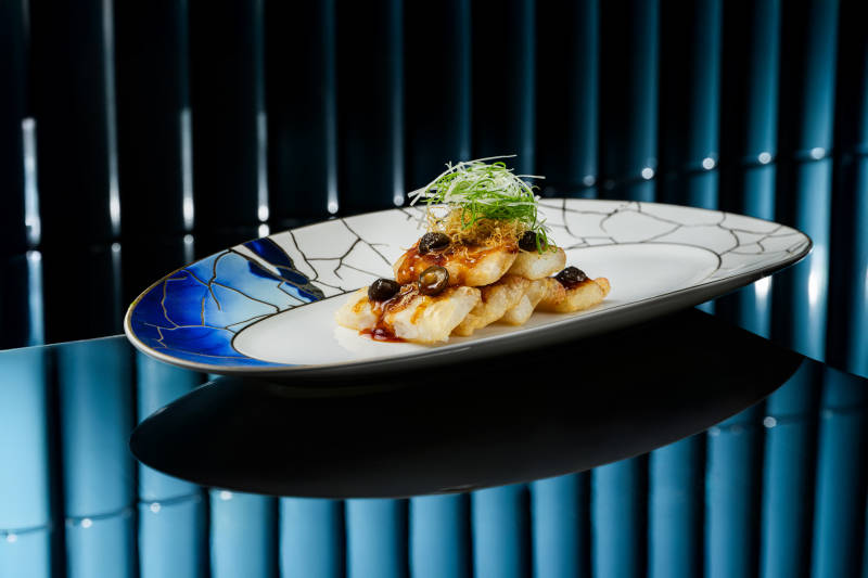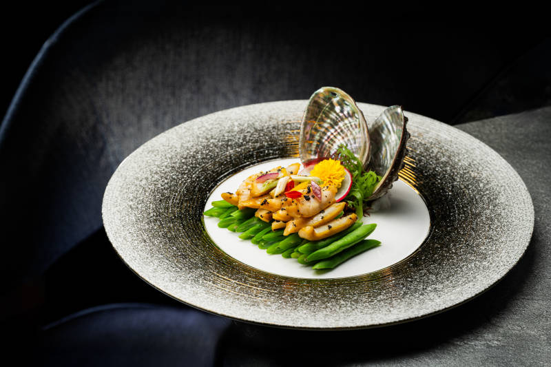 以粵菜經(jīng)典技法處理西方食材,體現(xiàn)“中技西材”的文化融合。主廚以傳統(tǒng)粵菜經(jīng)典的油泡手法,處理來自西澳洲的龍蝦,并以細(xì)膩切片確??诟幸恢屡c視覺美感,成就對(duì)傳統(tǒng)的奢華演繹。
