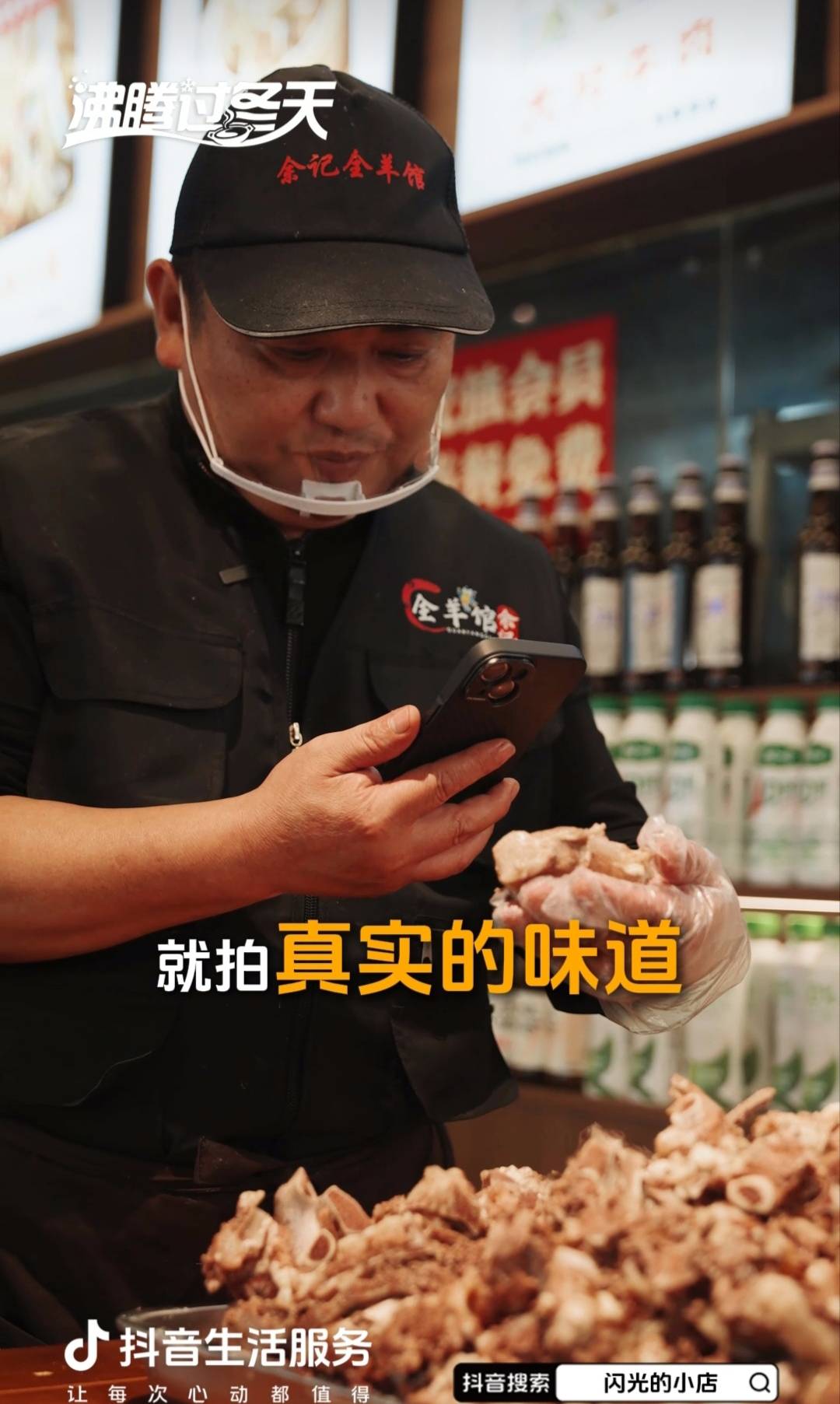 借著抖音的宣傳,老余讓越來越多的客人知道,羊肉不止是驅(qū)寒食材,其他季節(jié)吃羊肉也別有一番滋味。與此同時(shí),老余不斷更新店里菜品,一年四季都有主推菜色,客人越來越多,小店的淡季從此不“淡”了。通過在抖音的內(nèi)容經(jīng)營,老余幫老店找到了彌補(bǔ)“短板”的辦法。之后,老余花更多心思在小店的口碑打造上,他慢慢把拍視頻的重點(diǎn)從吃播轉(zhuǎn)向菜品等方向,展示店里用的寧夏灘羊品質(zhì)有多好、肉質(zhì)多新鮮等等,讓大家放心吃的同時(shí),也能知道余記全羊館不只是“網(wǎng)紅店”,更是家靠著真材實(shí)料和好口碑經(jīng)營了二十幾年的“老字號(hào)”。線下口碑越傳越遠(yuǎn),又為店里生意注入了新活力。