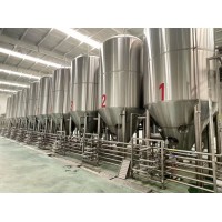 發(fā)酵系統(tǒng)說明:此階段為啤酒釀造階段。具體流程為:投料-糖化-過濾-煮沸(添加酒花)-回旋沉淀-麥汁熱交換,然后泵入發(fā)酵罐進(jìn)行發(fā)酵。啤酒發(fā)酵罐存儲(chǔ)12-15天時(shí)間即可發(fā)酵儲(chǔ)存成熟。?